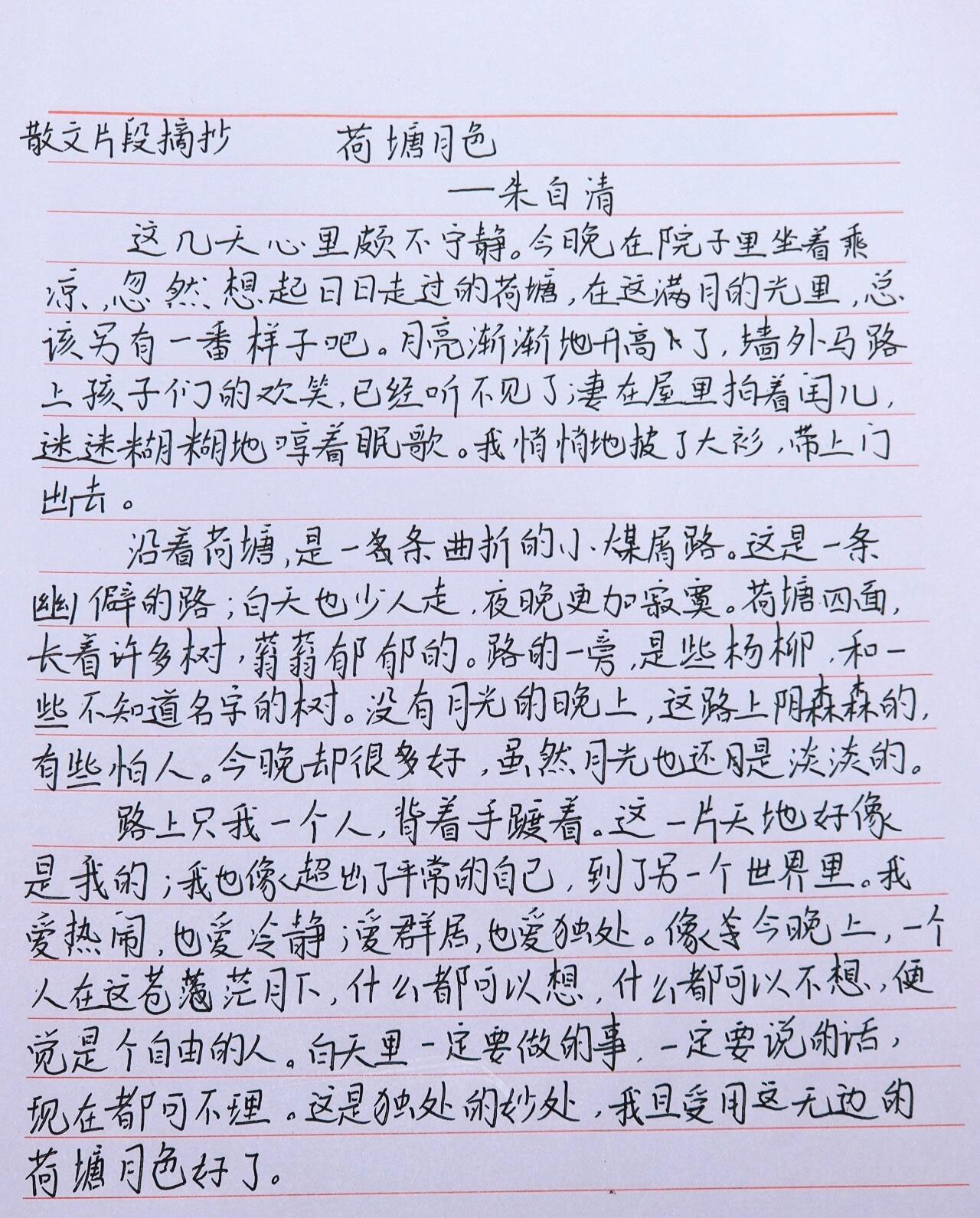 荷塘四周:通过树色、远山、灯光等细节描写,营造出一种静谧而深远的意境。